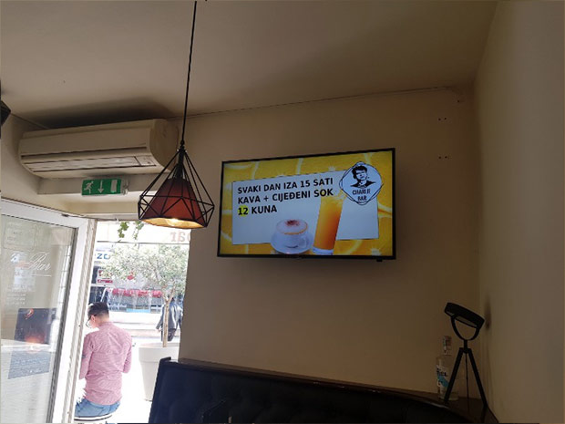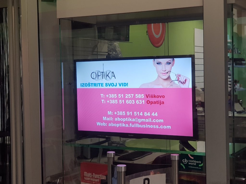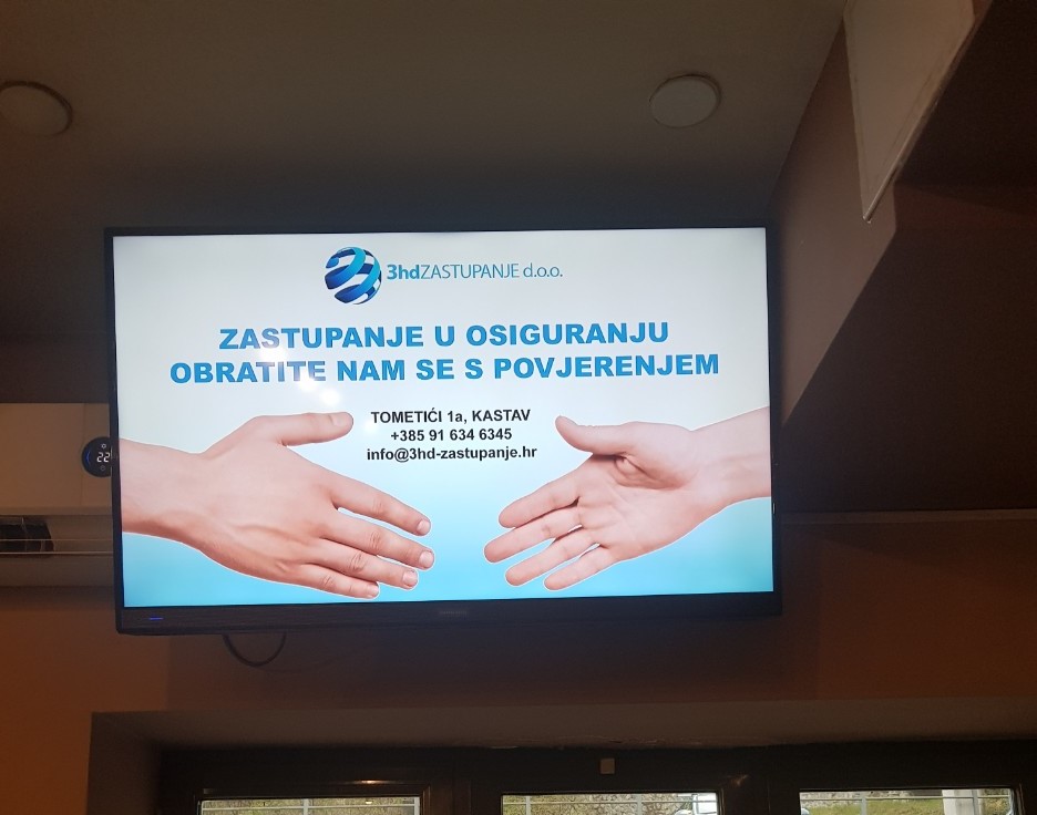 Pomoću naše tehnologije ubacujemo Vašu reklamu u sustav i ona se kreće prikazivati 3x u minuti, 180x na sat te 4344x na dan odnosno 52000 u mjesec dana gdje će potenciijalni klijenti vidjeti vašu ponudu, akcije,te proizvode i usluge vizualno. Ako nemate svoju reklamu mi ju izrađujemo za Vas. Na ovaj način možete raditi i oglase za traženje novih zaposlenika te sve što želite da ljudi vide. Ispod na slikama možete vidjeti kako to izgleda.